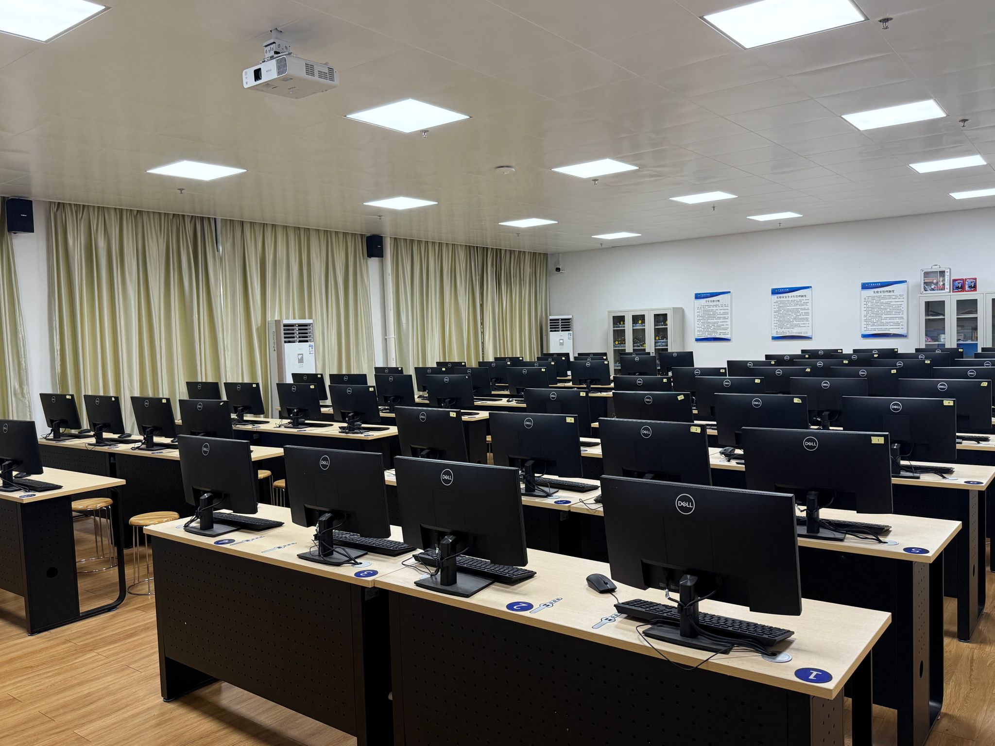 专业与公共机房承担公司各院系计算机相关课程的实验教学任务,以服务全院师生为宗旨,面向全校开放,是资源共享、功能齐全的高性能计算机公共服务平台。机房安装有多媒体教学统统,教师机可通过多媒体教学系统来控制员工计算机进行教学。