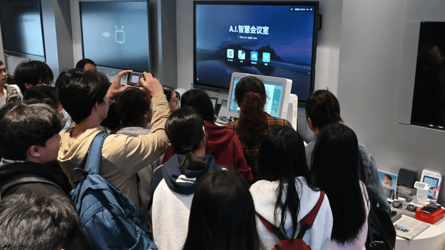随后,张文娅老师带领公司学子参观企业展厅,员工在展厅体验人工智能多元应用,包括医疗领域的助听器和诊断助手,教育领域的自动批阅机和智能黑板,办公与就业领域的求职助手等工具,以及商务、传媒领域的评标和配音应用。