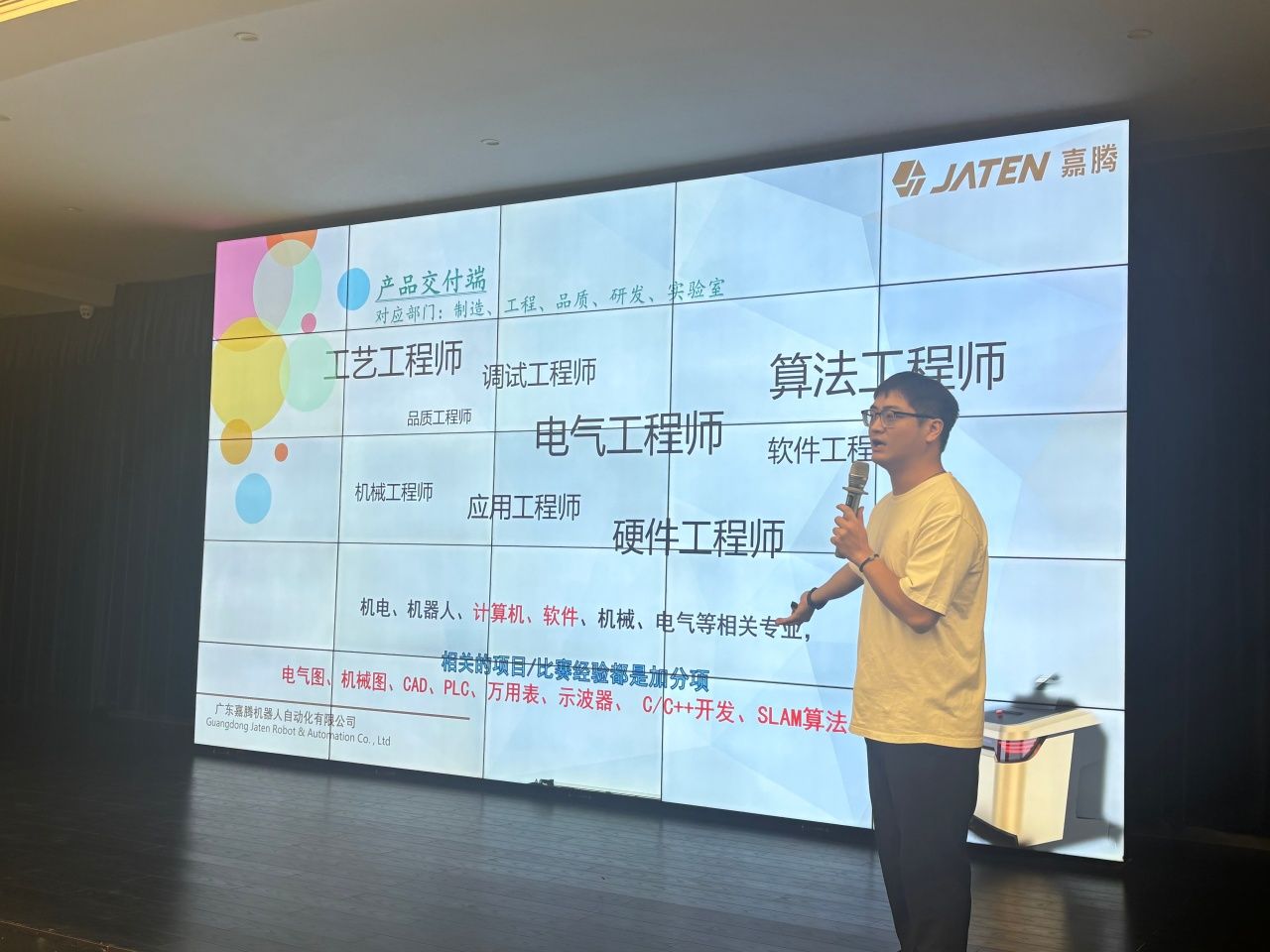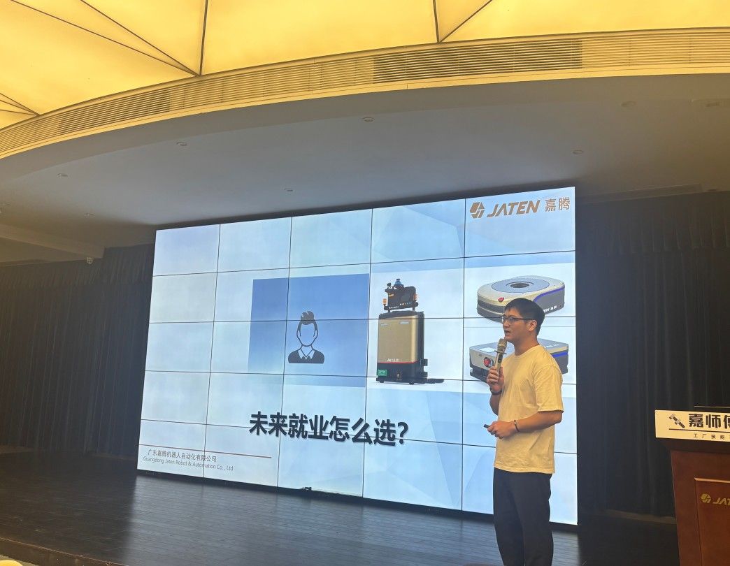 作为中国工业机器人十大品牌商之一,嘉腾机器人的现代化厂区里藏着全球智能制造的创新答案。会议室里,嘉腾课堂老师结合企业从合成石制造到移动机器人研发的转型历程,揭开了这家"国家小巨人企业"的成长密码——从2005年开启研发至今,凭借持续创新斩获德国红点设计奖,产品已服务华为、广汽等70余家世界500强企业。