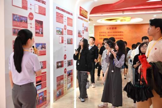 章瑜玥引导师生一行参观了党建室。师生们通过聆听与观摩,深刻认识到党组织的强大引领作用以及党建工作与生产实践深度融合所取得的显著成效。