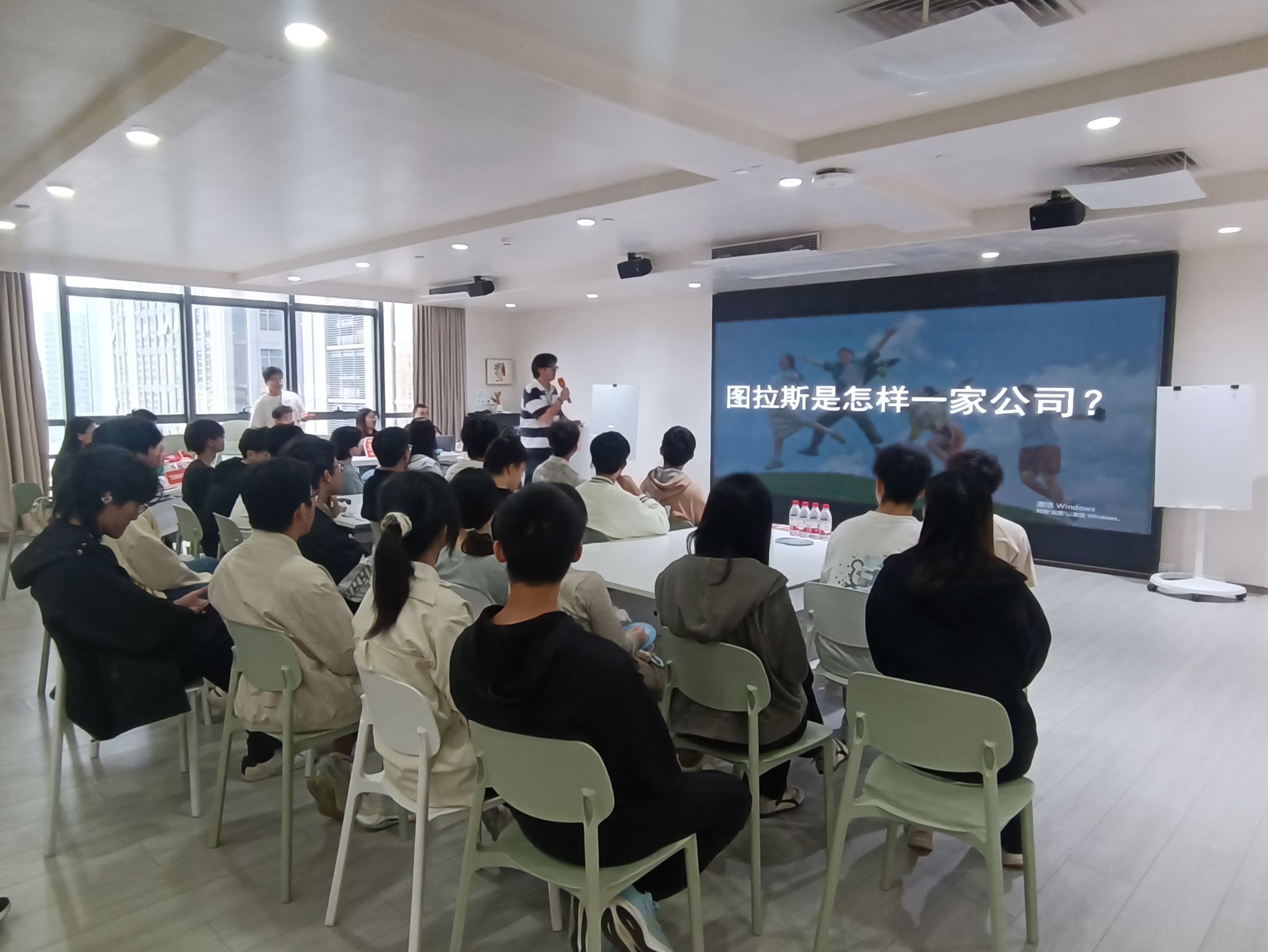 在校园招聘HR天宇的带领下,参观了图拉斯的商品,了解商业文化、公司价值等,同时参观了办公区域,让大家初步了解图拉斯。在短暂的分享后,抖音图拉斯负责人洪杨为同学们带来了干货十足的分析会,从商品研发经历,遇到瓶颈、创新价值到同事间的亲身经历进行论述。