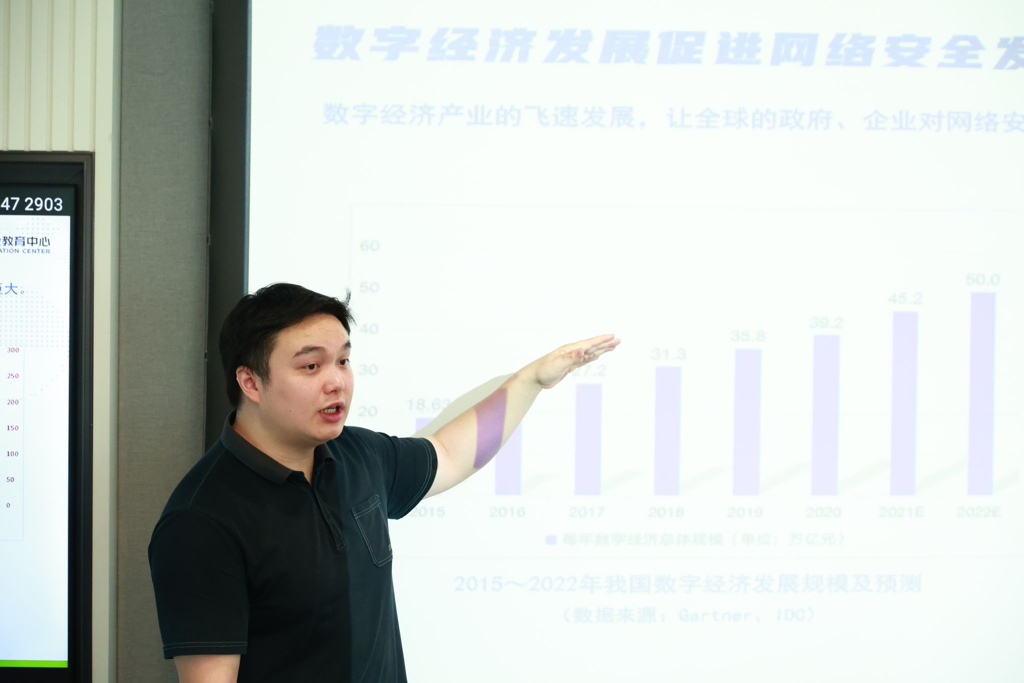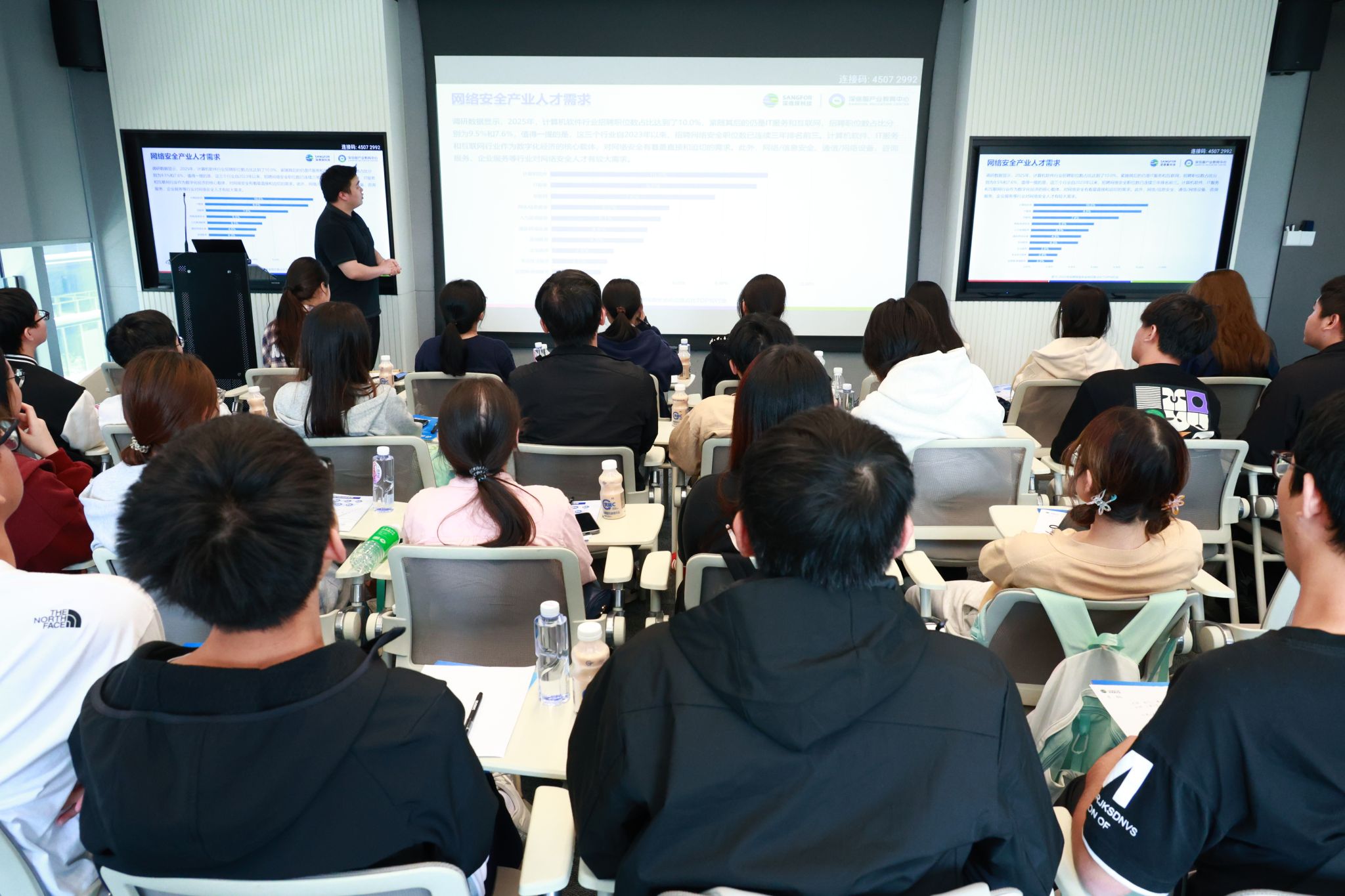 随后,卢经理以“网络安全职业认知与职业规划”为题带来就业分享。他先剖析网络安全产业的人才需求现状、重点企业情况及行业就业态势,再详细拆解常见岗位的能力模型,清晰梳理岗位所需核心技能,最后以“未来的你想要做什么”的提问引发深度思考,为学子们的职业发展提供了切实指导。