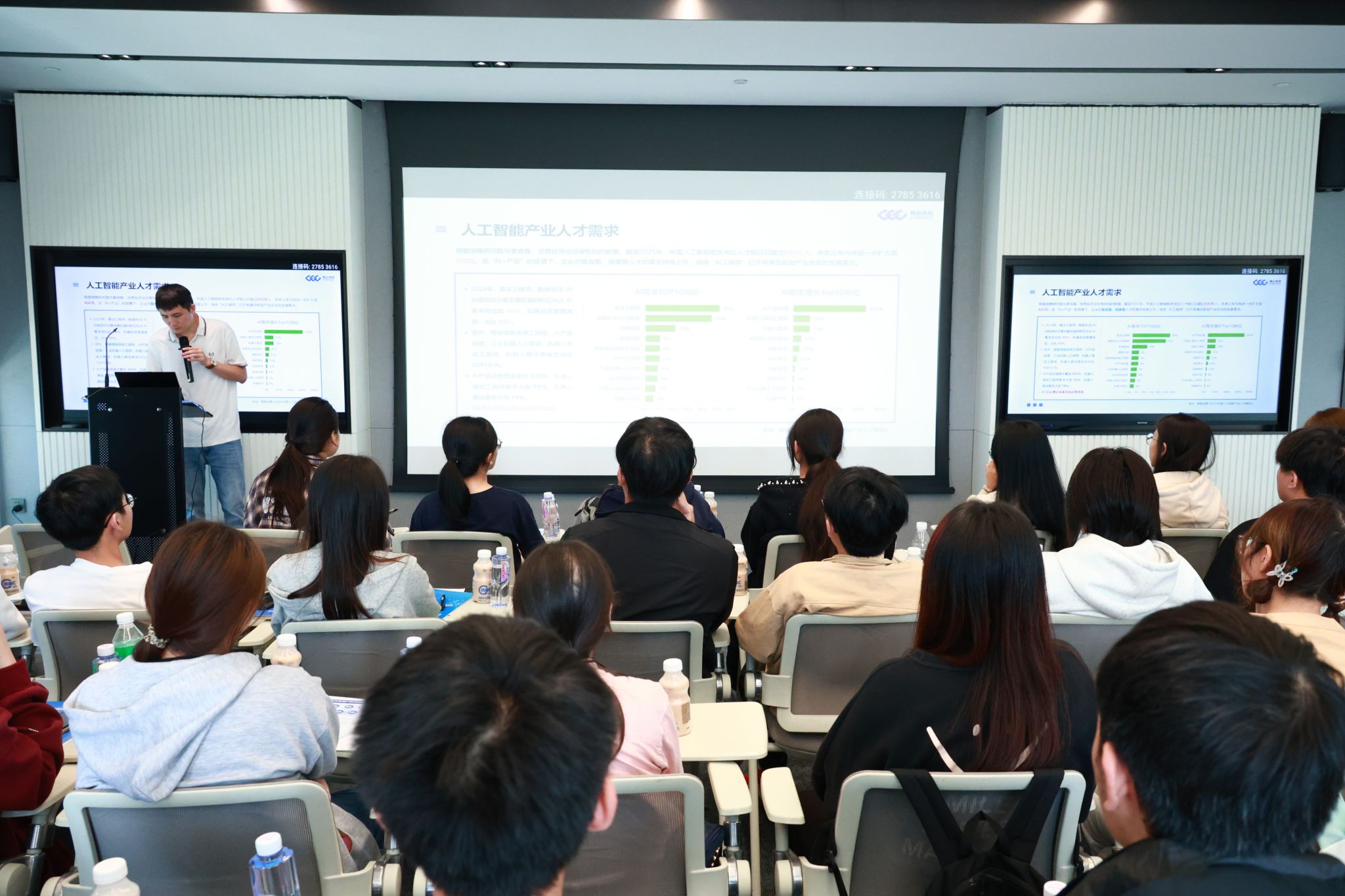 下午,解决方案经理曾德清开展“拥抱产业新蓝海:高校人才成长路线规划”讲座。他首先介绍企业概况,详解人工智能相关竞赛及参与渠道,强调了行业对人工智能领域的重视;随后分享借助DeepSeek、豆包等AI工具赋能专业学习的实用方法,解析AIGC、大模型、智能体的应用场景,并为不同年级学子量身定制了成长建议:大一拓宽视野、筑牢根基,大二考取证书、竞赛赋能,大三聚焦实习、提前布局。