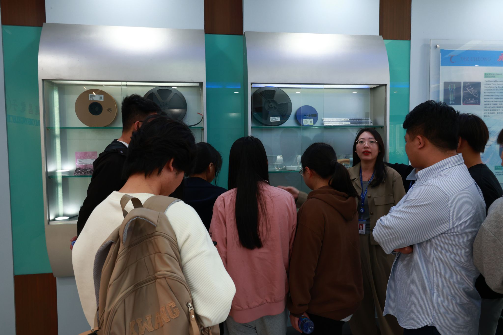 随后在展厅,讲解员围绕二极管元件展开系统讲解,涵盖主动与被动元件、不同应用场景下元件的关键区别等内容。同学们通过观察样品、操作互动装置,对电子元件的类型与应用场景形成了系统理解。