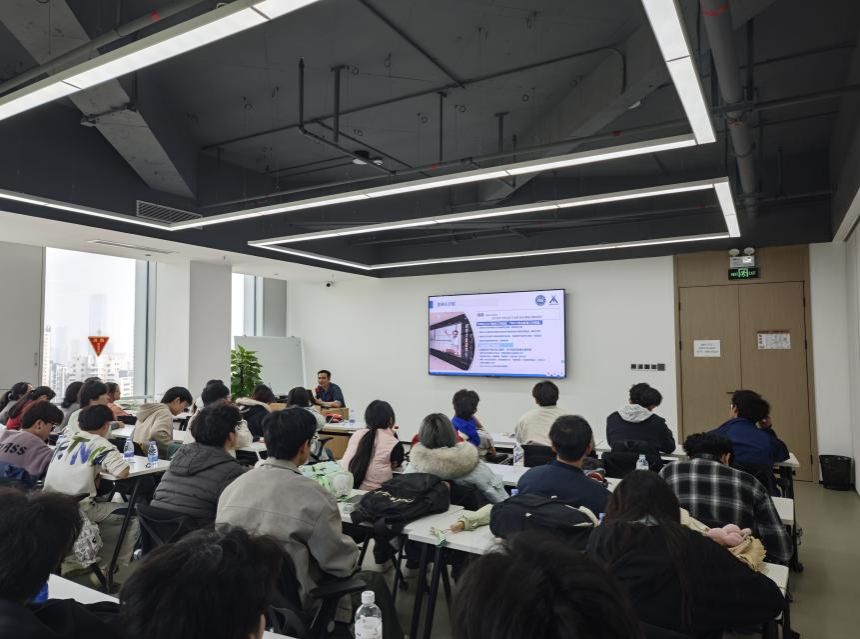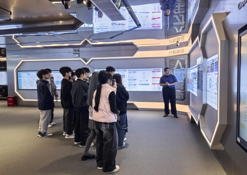 第二日,师生们聚焦技术前沿与企业全景,解锁数字时代的产业密码。在深圳讯方总部,解决方案工程师陈炳材先带领师生参观企业展厅,全方位解读讯方企业文化、产教融合业务、政企业务、产业公司建设、行业数字化转型等板块,同步展示自研产品、项目成果与专利技术,直观感受 ICT 产业的商业生态与技术落地场景。