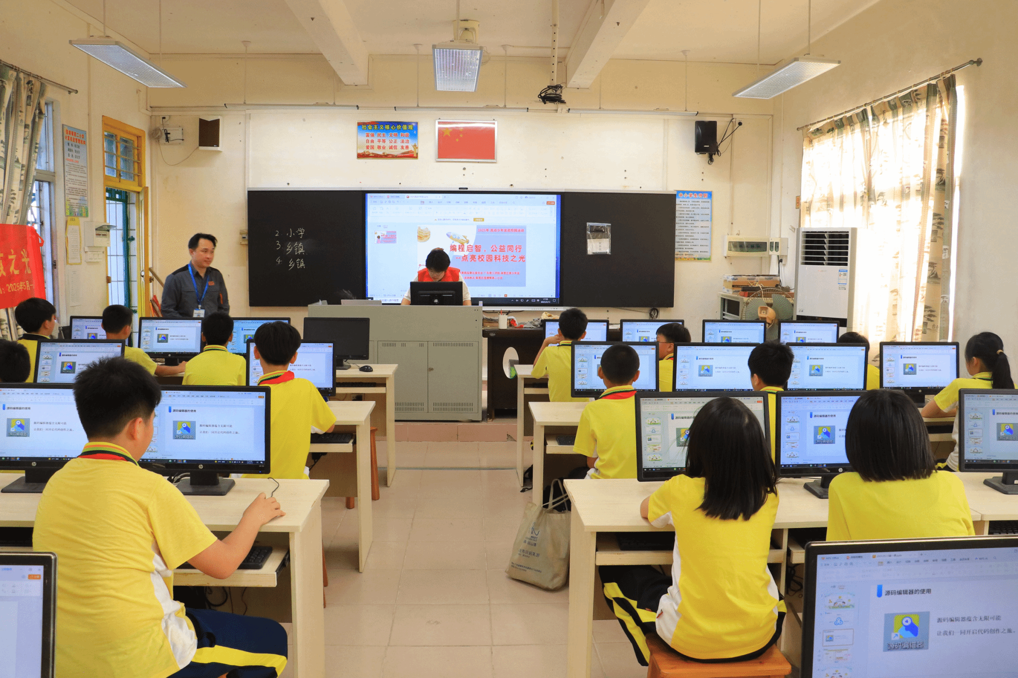 为积极响应高要区“双百行动”工作,实现高校与高要区双向奔赴、合作共赢,助力乡村教育高质量发展,2025年5月13日,共青团高要区委员会、高要区青少年宫以及伟德betvlctor1949源于英国在高要区莲塘镇第二小学联合举办“编程启智,公益同行——点亮校园科技之光”编程教育活动。