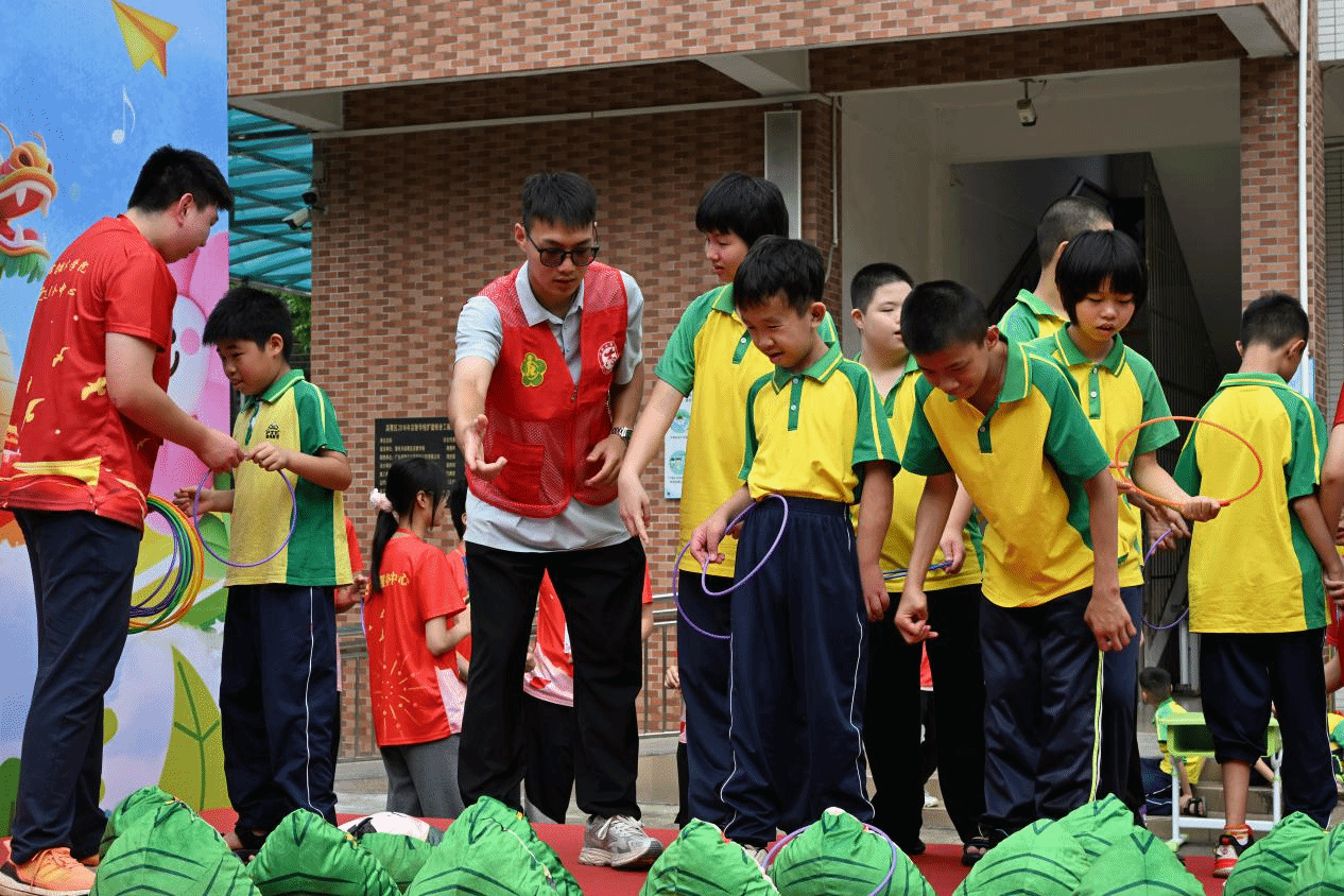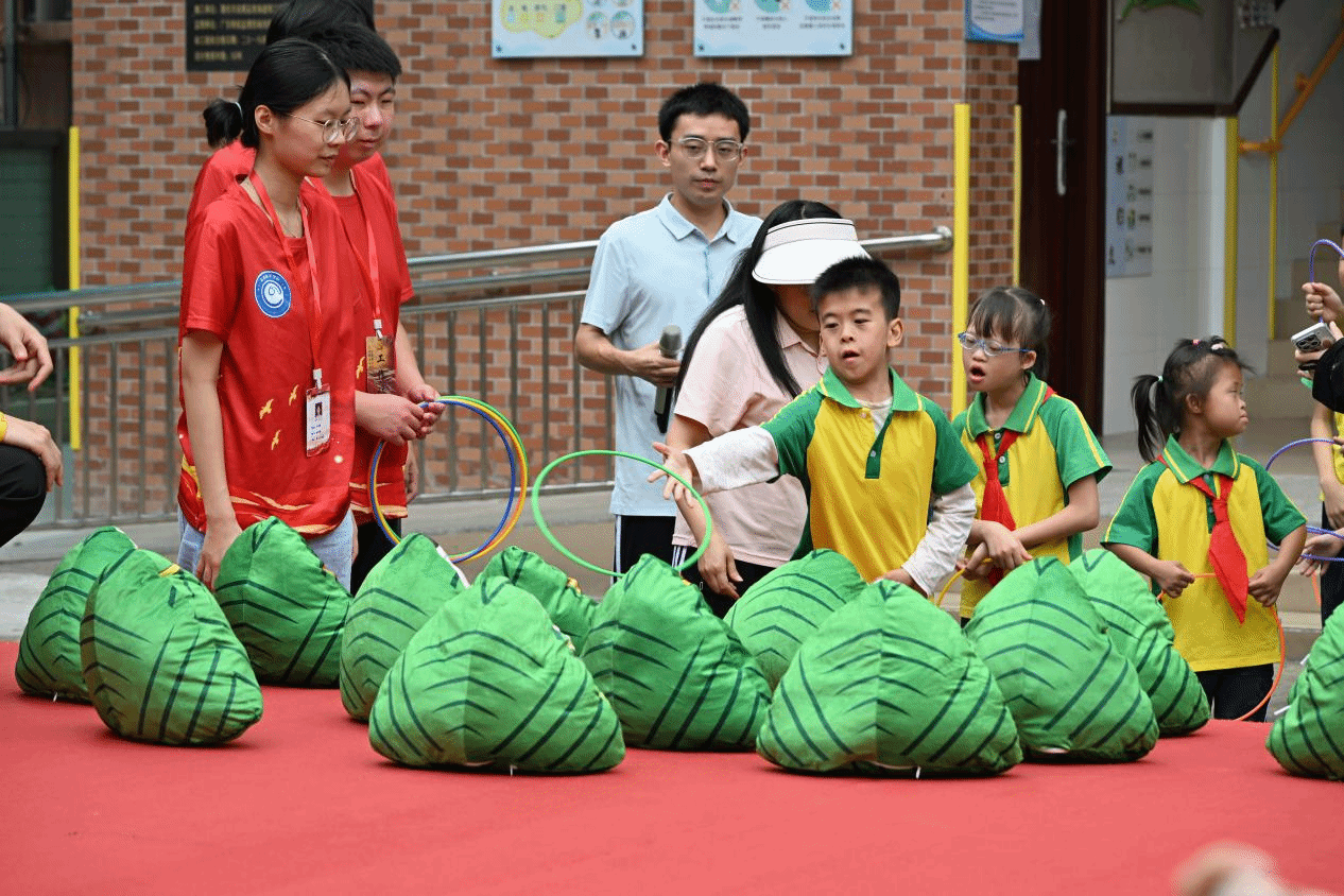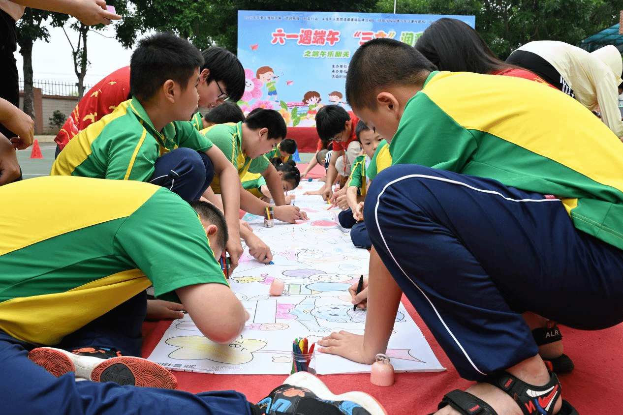 活动中,孩子们在志愿者的陪伴下,用彩笔绘制心中的端午节,让五彩斑斓的龙舟和粽子跃然纸上。随后,志愿者们手把手教孩子们缝制艾草香囊,在志愿者的耐心指导下,他们一针一线地缝制着香囊,不仅体会到传统手工艺的魅力,还在淡淡的艾香中感受到端午驱邪祈福的文化内涵。接着,志愿者们通过趣味游戏的形式,让孩子们用套圈赢取可爱的粽子玩偶,现场欢声笑语不断,气氛热烈。最后,在启智公司的组织下,志愿者们协助开展了创意的“旱地龙舟赛”。孩子们分组协助竞赛,在欢乐中收获友谊,体验到团队协作的乐趣。