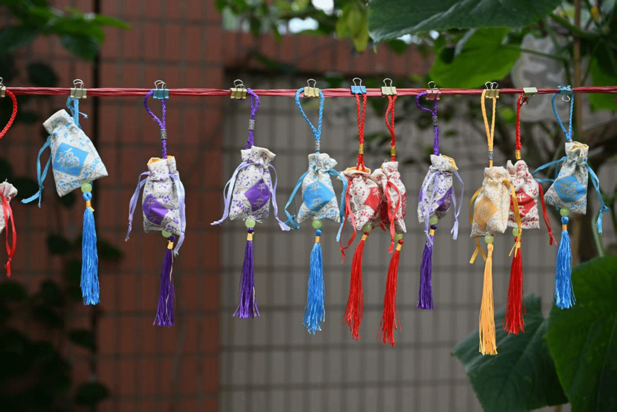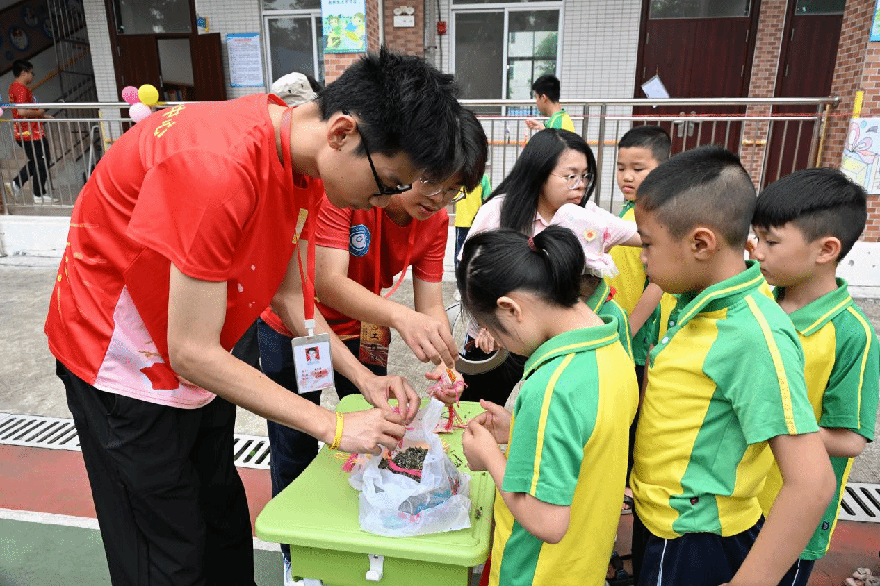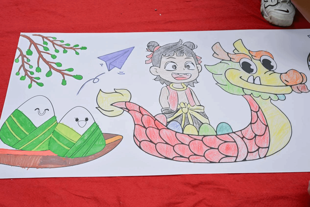 活动中,孩子们在志愿者的陪伴下,用彩笔绘制心中的端午节,让五彩斑斓的龙舟和粽子跃然纸上。随后,志愿者们手把手教孩子们缝制艾草香囊,在志愿者的耐心指导下,他们一针一线地缝制着香囊,不仅体会到传统手工艺的魅力,还在淡淡的艾香中感受到端午驱邪祈福的文化内涵。接着,志愿者们通过趣味游戏的形式,让孩子们用套圈赢取可爱的粽子玩偶,现场欢声笑语不断,气氛热烈。最后,在启智公司的组织下,志愿者们协助开展了创意的“旱地龙舟赛”。孩子们分组协助竞赛,在欢乐中收获友谊,体验到团队协作的乐趣。