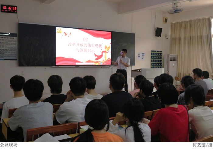 课上,林显宁分别从“党的二十届三中全会的意义,改革开放的成就与启示,习近平总书记在全会上的重要讲话精神,时代新人的行动与责任”四个方面进行讲解,带领新生深切领悟党的百年奋斗的历史意义和历史经验,充分学习认识以史为鉴、开创未来的重要要求,引导新生领会并把握党的二十届三中全会精神,争做堪担时代重任的时代建设者和接班人。
