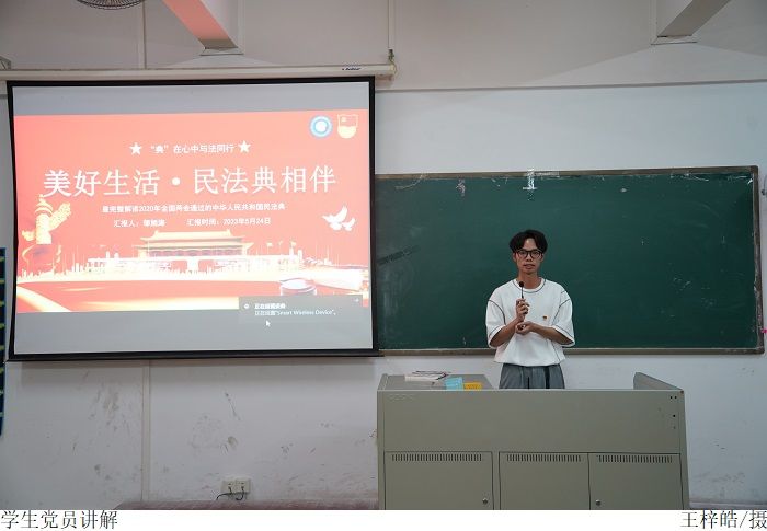 宣讲活动中,员工党员邹旭涛结合党的二十大最新精神,面向全体成员对《民法典》的重要内容进行深入浅出的讲解,围绕日常生活中可能涉及的各种法律问题,进行具体案例的讨论和分享,让大家更好地理解民法典的相关规定和适用情况,切实提高全体成员的法治观念和法治思维,推动司法实践与法学教育的良性互动。