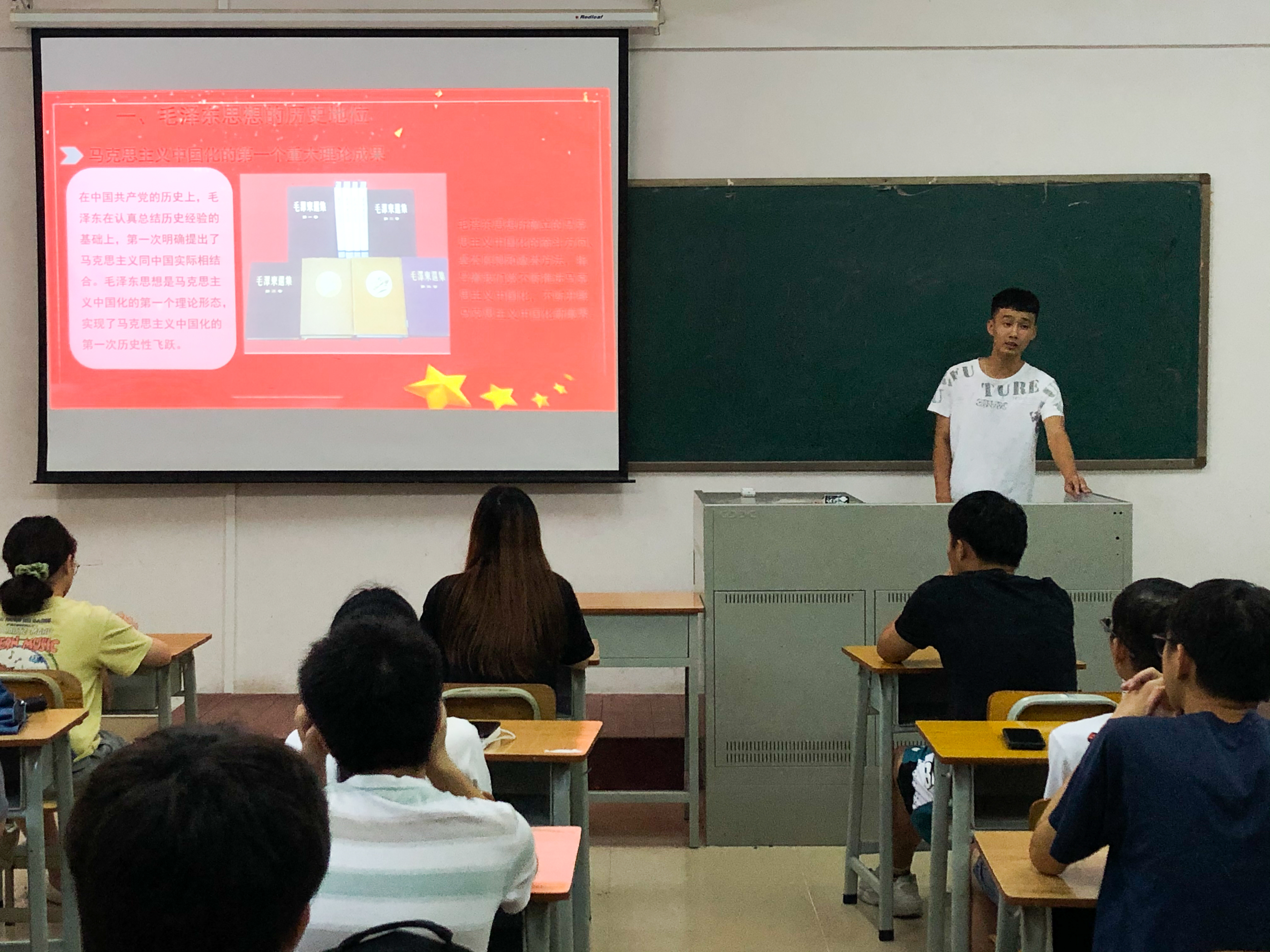 孙浩佳同志带领积极分子回顾中国共产党在各个阶段的光荣奋斗历程,以及百年来党引领人民群众取得的各项伟业,让积极分子真实感受到共产党的伟大,共产党人顽强拼搏的优秀品质。蓝世浩同志表示积极分子要从宏观的视野观察中国共产党的发展历程,充分认清我们的历史使命和时代责任,学习中共党史要学会从马克思主义的世界观和方法论出发,运用唯物辩证的思维和历史唯物主义的方法去看待和处理问题,坚持中国的立场,从党史中吸取优秀经验。