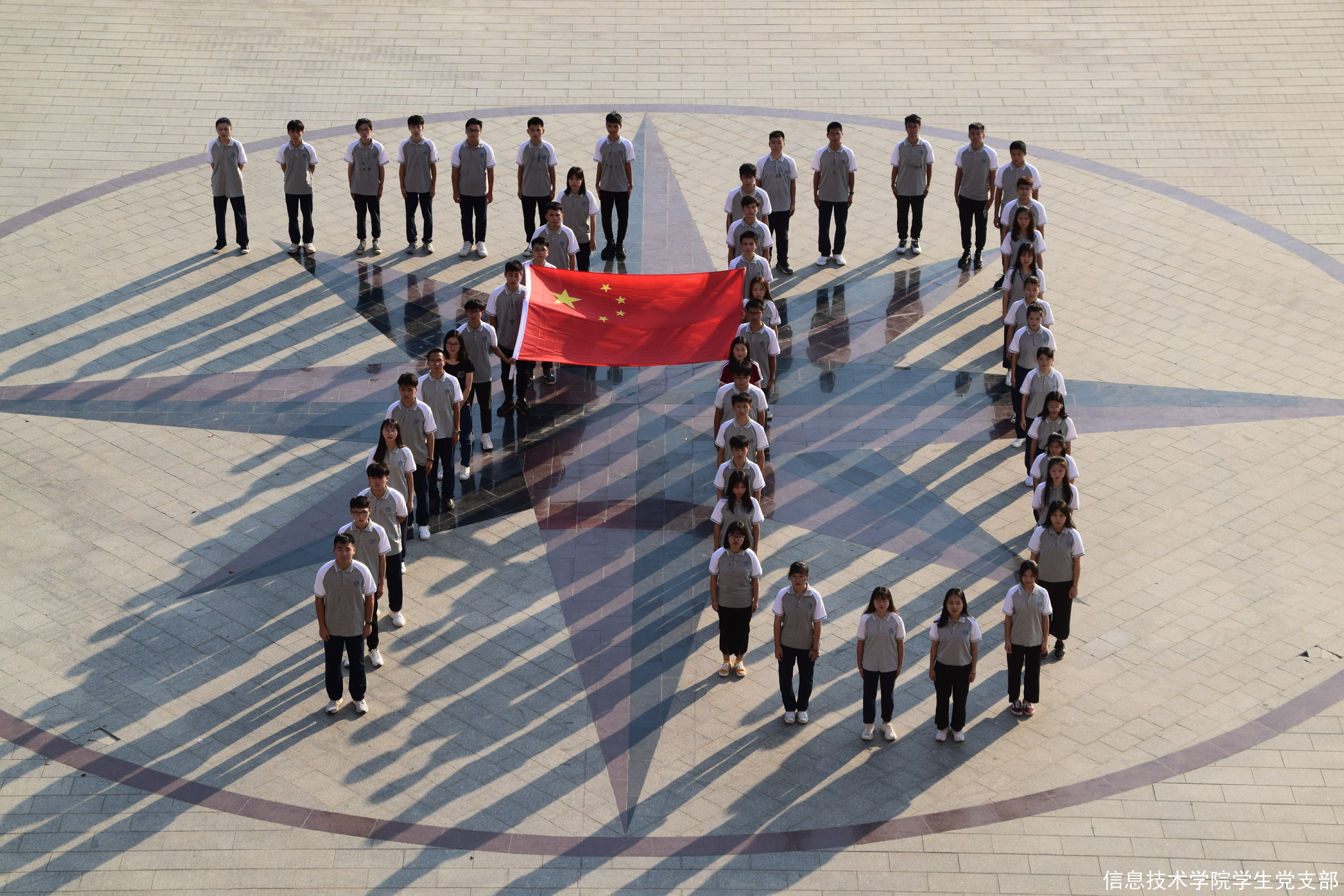活动当日,由公司党总支梁星全书记和员工党支部书记胡娇铃老师带领员工党支部全体成员于9月29日在振华楼下齐心协力摆出70周年字样,为祖国送上最真挚的祝福。
