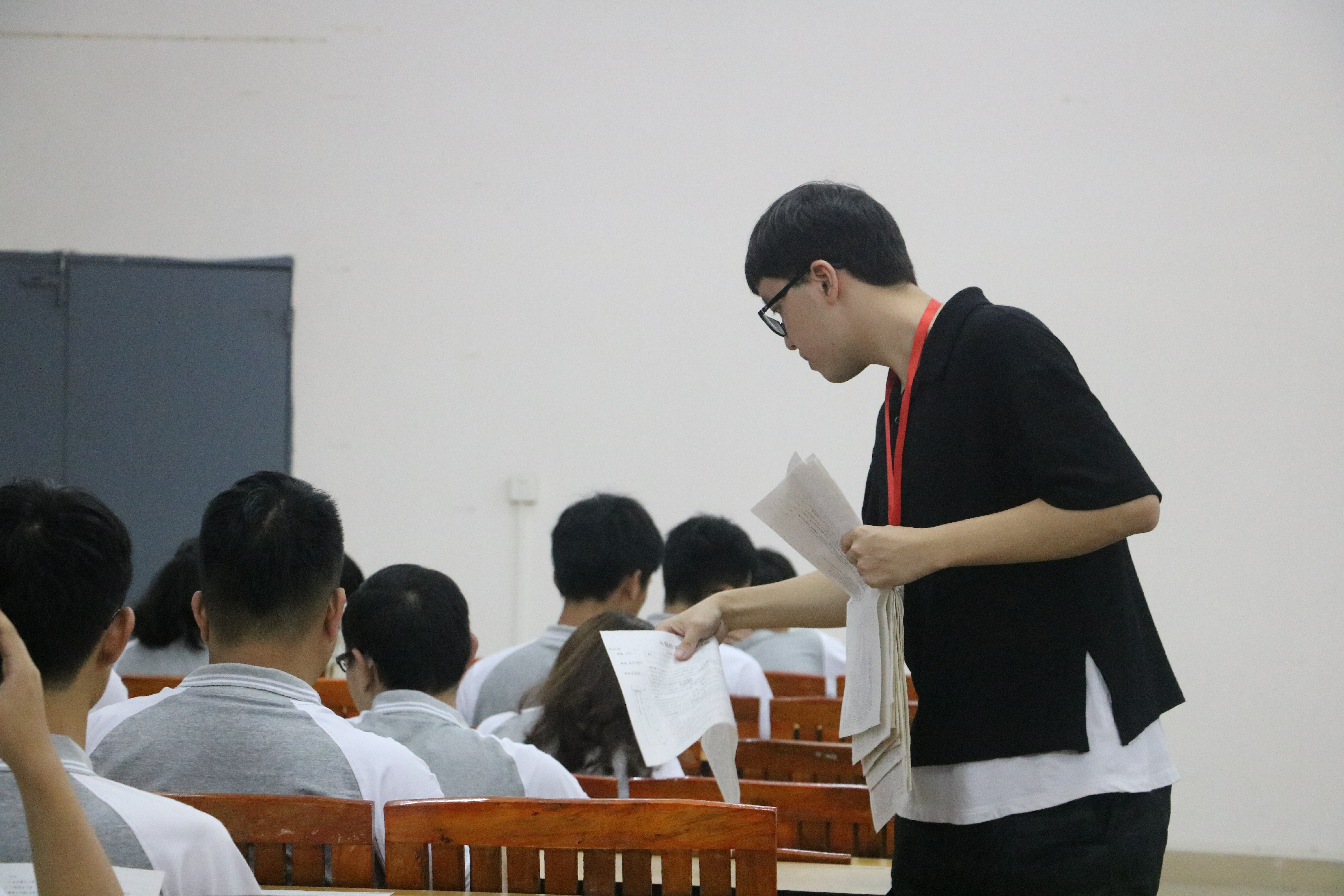 开考前,各入党积极分子提前到达考场,严阵以待应对接下来的入党积极分子考试。19点30分,监考员们准时分发试卷。考场上,每位积极分子都在认真作答,秩序井然,通过自己对党的了解与学习奋笔疾书,争取取得一个优异的成绩。考试期间,监考员认真维护考场秩序及监督入党积极分子考试。21点整,入党积极分子在监考员的提醒下停止作答,在考场内静坐等待监考员依序收卷。随着最后一位入党积极分子离开考场,此次入党积极分子考核便告一段落。