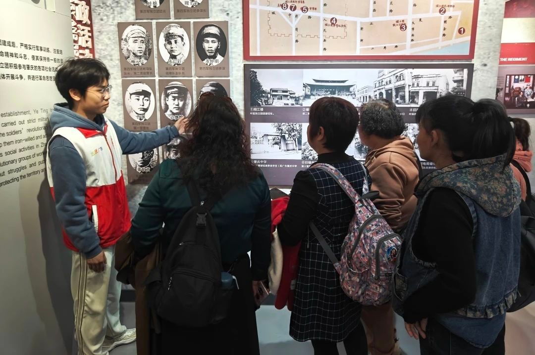 活动期间,他们在馆内仔细研读叶挺独立团的组建背景、发展历程以及在北伐战争中建立的不朽功勋等详实史料。随后,入党积极分子凭借着丰富的知识储备和饱满的热情,为前来参观的游客们细致讲述叶挺独立团的英勇事迹。同时,他们还主动承担起馆内的清洁整理工作,擦拭展柜灰尘、整理陈列物品等。入党积极分子以实际行动维护着纪念馆庄严肃穆的环境,为参观者营造出更好的学习氛围,展现出新时代青年的良好风貌和服务精神。