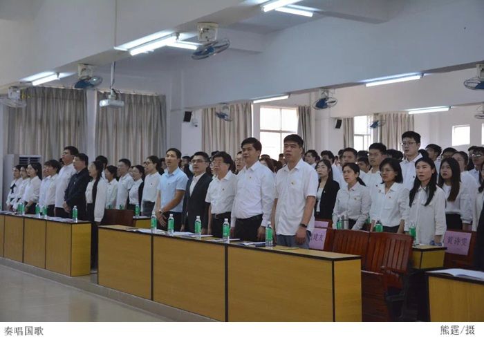 大会在庄严的国歌声中拉开帷幕。
