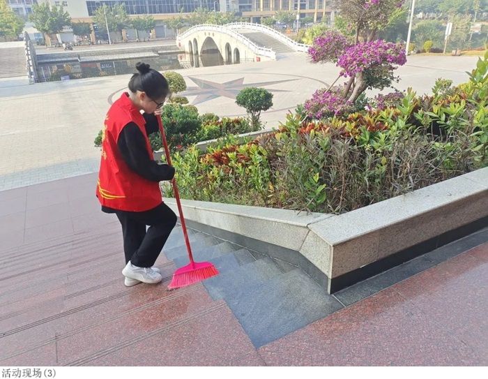 志愿者于活动前到达振华楼二楼大厅领取清扫工具与志愿者服,随后井然有序地对校道及周边绿化带附近的烟头、残枝落叶及生活垃圾进行彻底清扫,并将周边停放不规范的自行车进行了统一摆放。活动过程中,每一位志愿者秉持着勤劳积极的精神,共同为美化校园环境贡献了自己的一份力量。