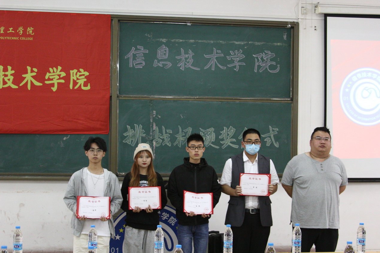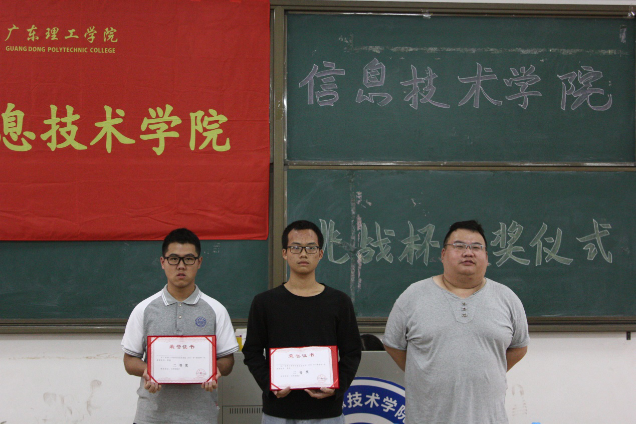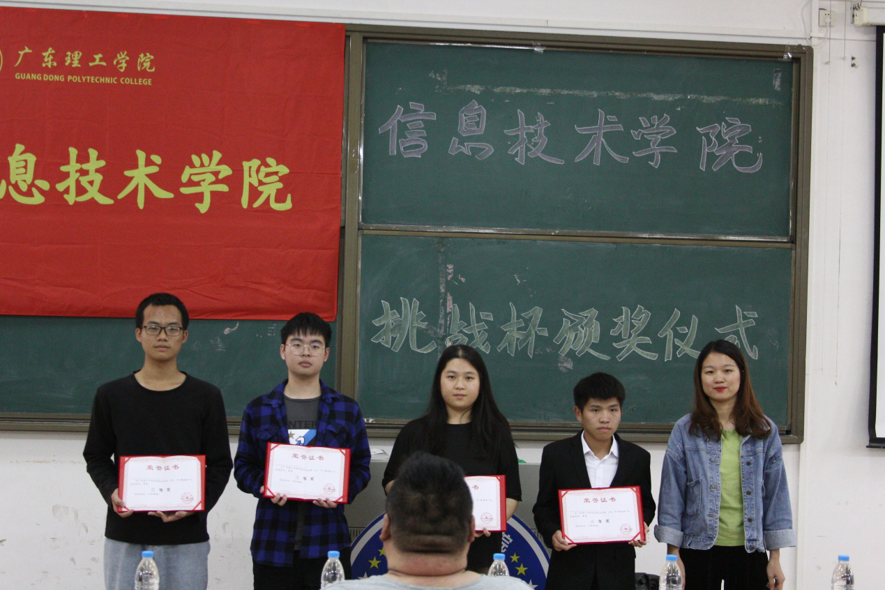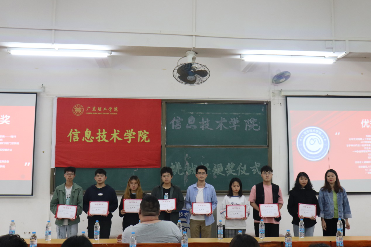 仪式上,聂镇老师为本次颁奖仪式致辞,在发言中肯定了所有参赛人员和工作人员的努力,并对所有获奖人员表示由衷的祝贺,预祝今后的活动越办越好!在颁奖仪式中颁奖奖项有优秀奖、三等奖、二等奖、一等奖以及优秀工作人员。获得本次比赛优秀奖的选手和获得本次比赛三等奖的选手由胡娇玲老师亲自颁奖并合影留念。获得本次比赛二等奖的选手和获得本次比赛一等奖的选手由聂镇老师亲自颁奖并合影留念。获得本次比赛优秀工作人员的有黄楚淇、陈炫杏、王师栋、罗伟铿、朱彩萍、龙思雨、李道豫、郭晓铭、王欣然、陈俊健,由聂镇老师亲自颁奖并合影留念。仪式的最后,所有的获奖人员和到场领导老师进行了合影留念。