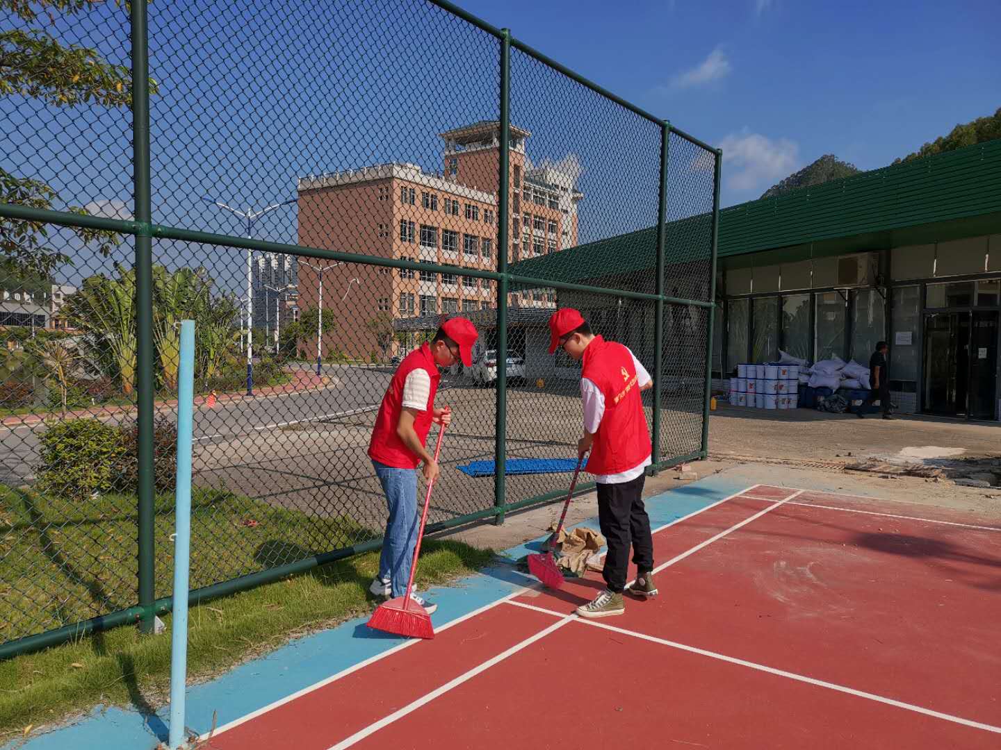 时值盛夏,创文工作启动伊始,老师和创文志愿者分工合作,切实做到搞好所属卫生区域清洁:绿化带无白色垃圾,道路干净;教学楼、宿舍楼走廊楼梯干净整洁;志愿者将公共区域每个角落的杂物、树叶、烟头等垃圾一一清理并分类;把未停放好的单车停放整齐,并劝导来往车辆停放到停车位中。梁星全书记对此次创文活动志愿者的辛苦付出作出表扬,他指出:校园创文建设,首要是要保障好员工们的复课环境;其次同学们要有说文明话、办文明事的优良作风。胡娇铃老师则对公司部分志愿者进行“社会主义核心价值观”和校训的抽查,皆能答其所问。