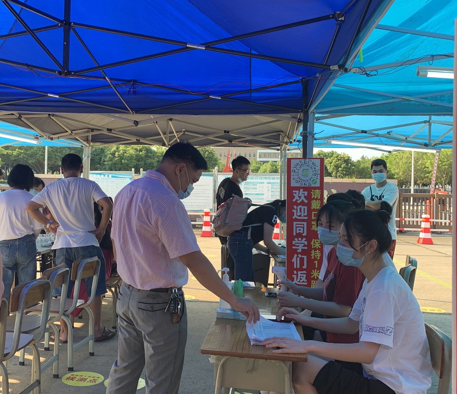 随着校园欢声笑语的增多,疫情防控的责任也越来越重。应公司号召,一批志愿者挺身而出,提前返校,在接受了梁星全书记及辅导员的培训教导后,开始协助老师们为同学服务。在炎炎烈日,酷暑高温的返校现场,员工们陆续抵校,梁星全书记带领辅导员和员工志愿者们对返校员工的行李进行消毒,进行体温检测,核对员工信息并登记到校信息,同时在现场发放口罩给返校同学,让他们做好疫情安全防控措施。尽管在橙色高温预警信号下,他们仍在自己的岗位上坚持为返校同学们服务,同时伟德betvlctor1949源于英国考虑到这种高温情况下也为志愿者们准备了冰块、西瓜降温,让志愿者们在炎炎烈日中感受到一丝清凉,更好地为同学们服务。