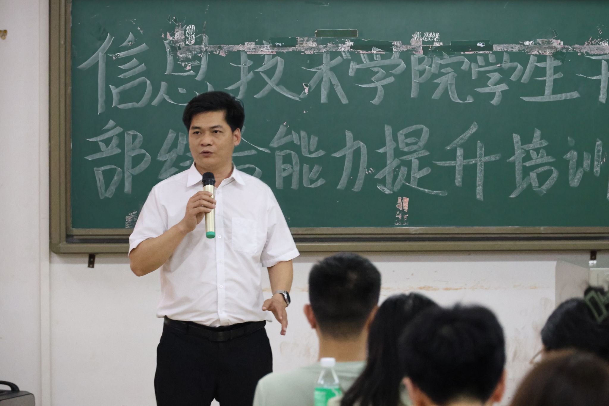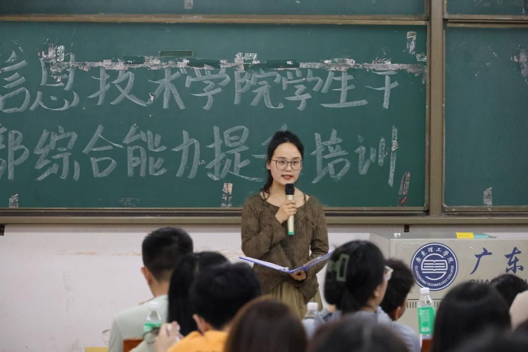胡娇铃老师强调员工干部不仅是服务者、也是引领者、更是协调者,要以身作则、树立榜样,在学术上追求卓越,还要搭建师生沟通的桥梁,促进部门协作与同学团结,确保信息传递及时准确。