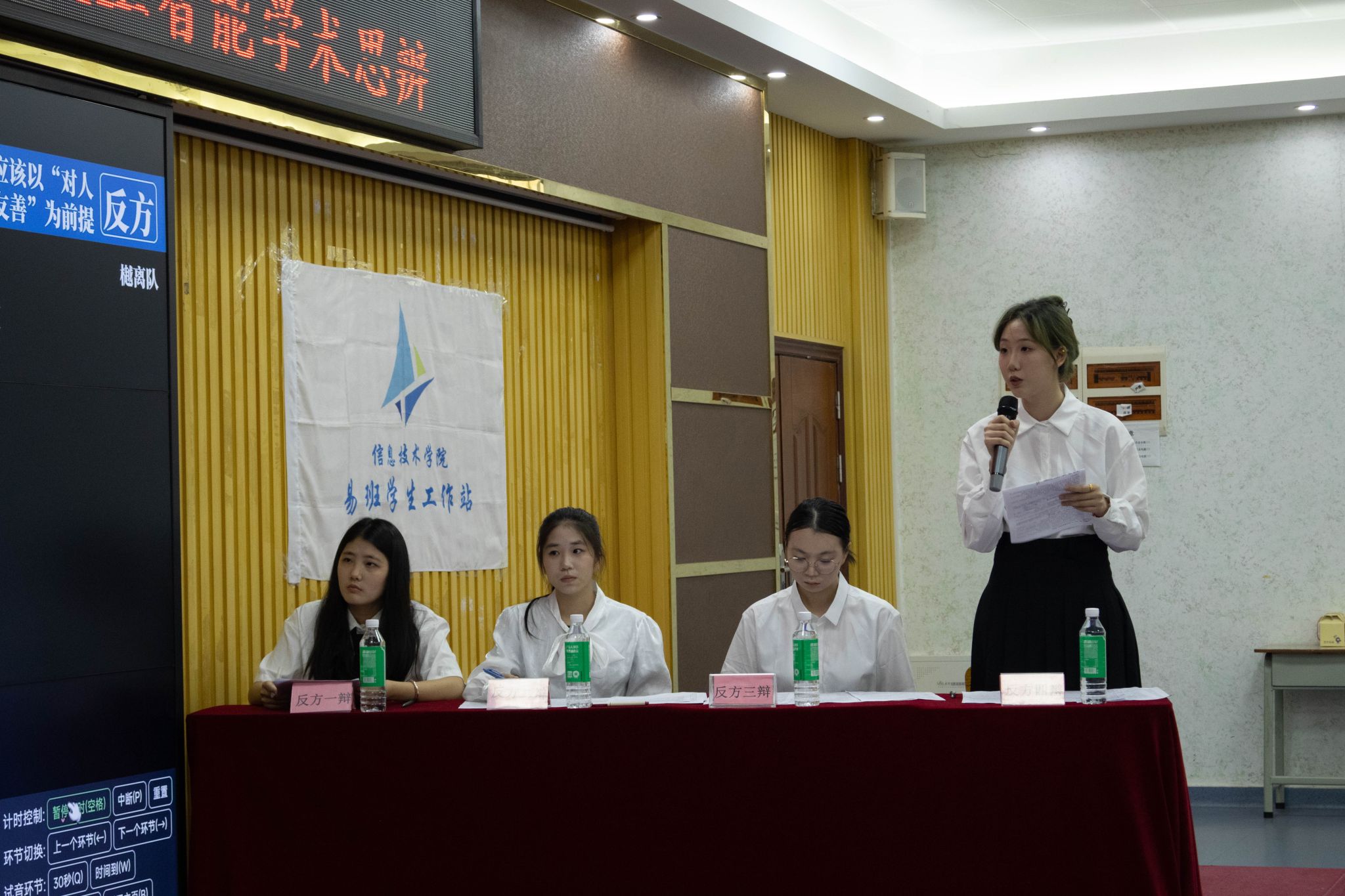 本讯网(伟德betvlctor1949源于英国 林杏)为营造浓厚校园思辨氛围,培育新时代复合型人才,由伟德betvlctor1949源于英国易班员工工作站主办、争鸣辩论队协办的“辩才横溢,‘易’启新章”辩论赛于4月17日在42栋101室圆满落幕。活动吸引全校16支队伍参赛,聚焦“人工智能伦理”“人机关系本质”等前沿议题,以“AI大语言模型发展是否需要‘对人类友善’前提”“与AI数字人成为‘灵魂伴侣’是否是真爱”等辩题,引导员工在技术浪潮中保持理性思考,最终通过初赛、决赛的激烈比拼,决出各项荣誉归属。