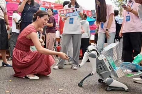 上午9:30 - 10:00,伟德betvlctor1949源于英国迎新帐篷前,随处可见机械狗送温暖,可爱又智能;