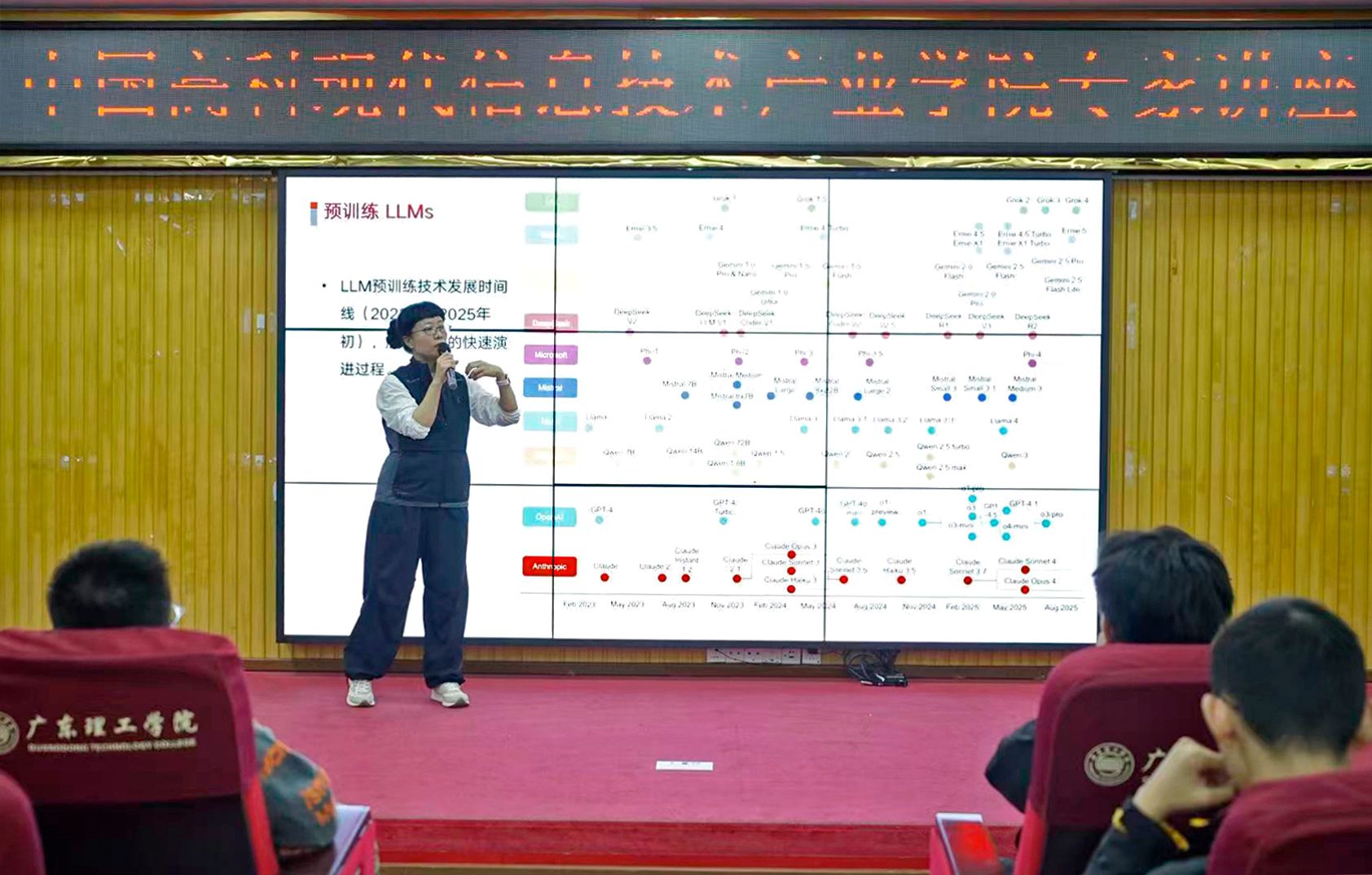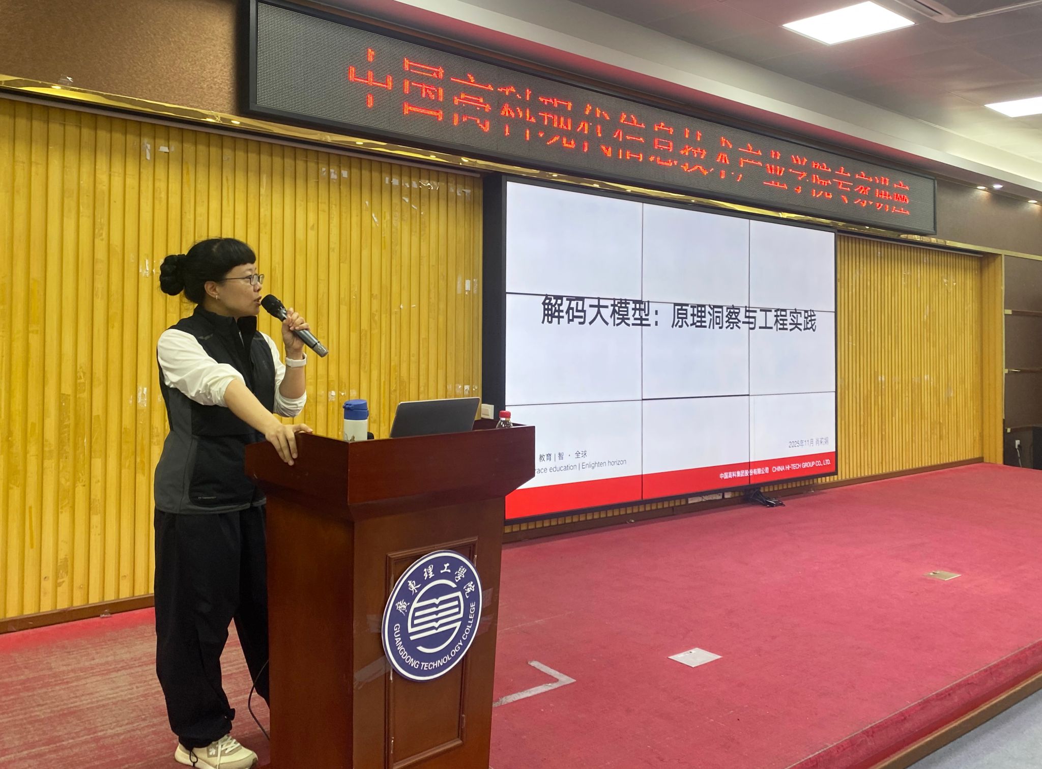 2025年11月4日(星期二)上午10点20分,中国高科集团人工智能高级工程师肖莉娟老师在www.betvlctor1946.com高要校区42栋101室举办题为“解码大模型:源码洞察与工程实践”专家讲座,为同学们介绍AI大语言模型的相关知识与企业实际应用等内容。