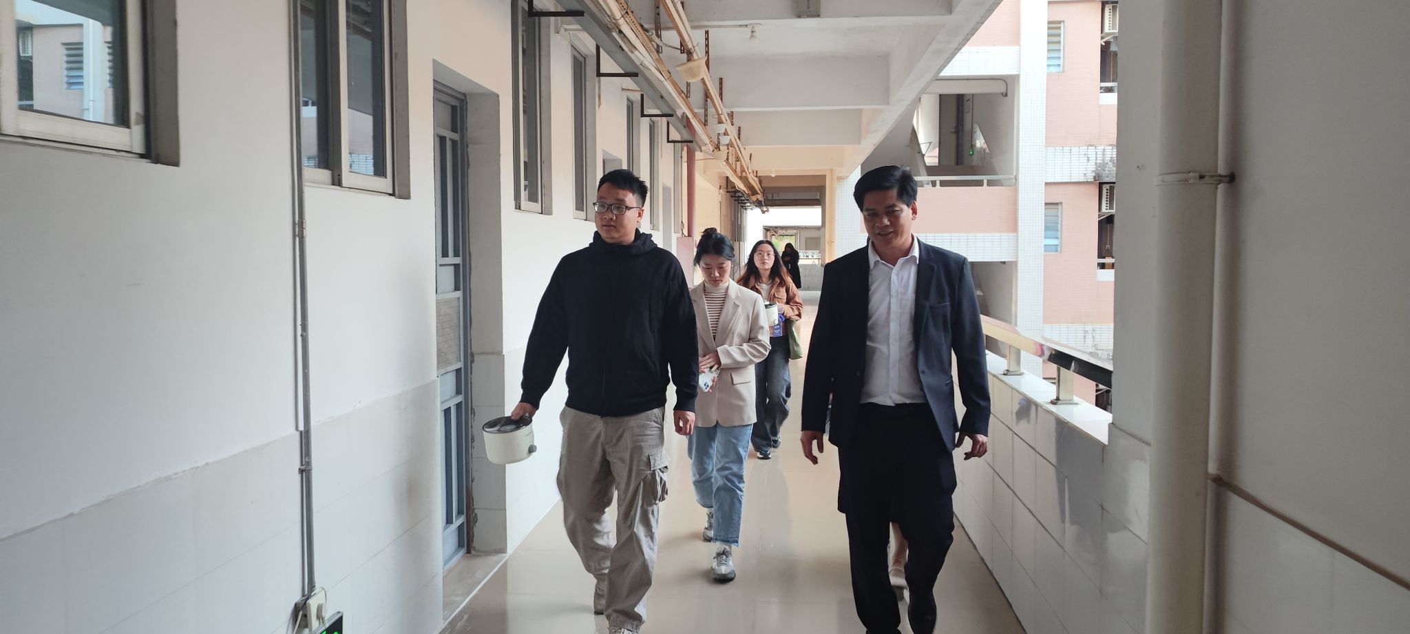 在宿舍前的开阔地带,钟兆天书记围绕宿舍卫生及安全等核心议题,向在场的各位辅导员详尽阐述了本次宿舍检查的重点所在,旨在确保检查工作的实效性及精准度,为同学们营造一个更加安全、和谐的居住环境。