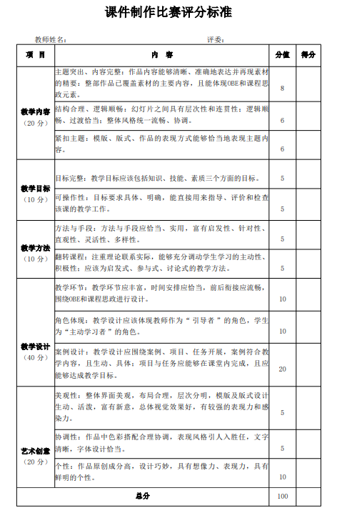 本次课件制作比赛对于提高公司教师课件制作能力、提高教师信息技术应用能力具有重要意义,通过比赛,可以发掘和推广一批具有创新精神和实践能力的优秀教师,激发全院教师的工作热情,促进教学创新。同时,比赛还可以促进教师之间的交流与合作,共同分享教学经验,提升整体教学水平,为公司教育事业的发展贡献力量。并且,强调OBE和课程思政元素的融入有助于培养符合社会需求和具有正确价值观的员工。