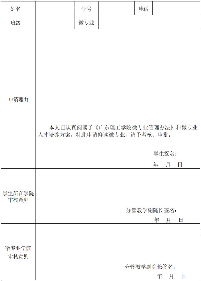 报名方式:有意向报名的同学请填写“www.betvlctor1946.com员工修读微专业申请表”,签署员工所在公司审核意见后将纸质版申请表上交到高要校区42210办公室赖老师收。电子版申请表的签名请用电子签名(可以签名在纸上,手机拍照粘贴到签名处)并将电子版申请表发送到邮箱:841256306@qq.com。