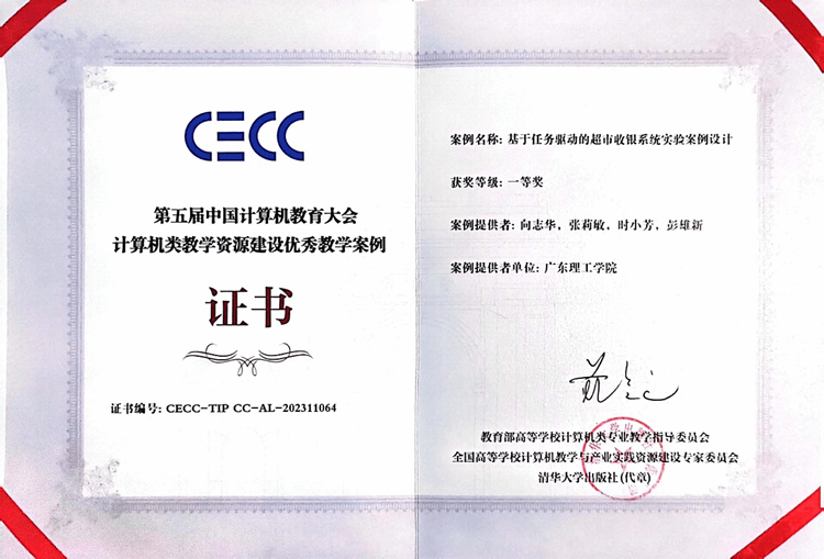 本次公司教师能够获得“第五届中国计算机教育大会计算机类教学资源建设优秀课程配套资源特等奖和优秀教学案例一等奖的好成绩,是公司近年来围绕立德树人根本任务、强化校企合作、公司产品质量和公司产品改革的标志性成果的体现。面向未来,公司将继续不断深化高等公司产品改革,深化产教融合、校企合作,与时俱进,建设优秀产学资源、一流本科课程和一流本科专业,不断提高计算机类专业人才培养质量。