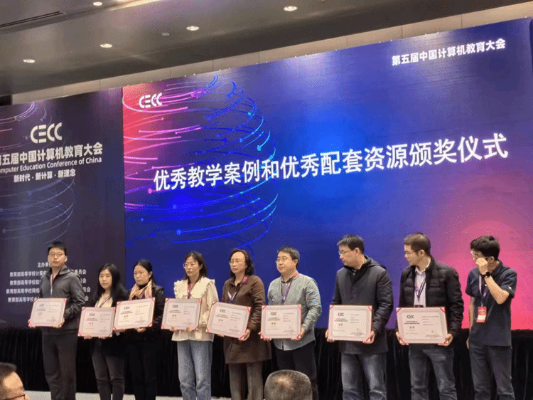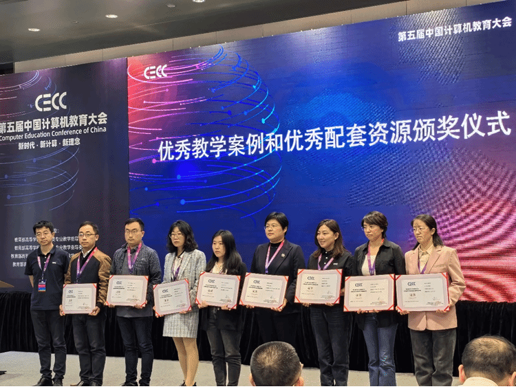 在2023年12月2日下午,时小芳教师代表团队在第五届中国计算机教育大会计算机类数字化教学资源建设分论坛上领取了两个获奖证书