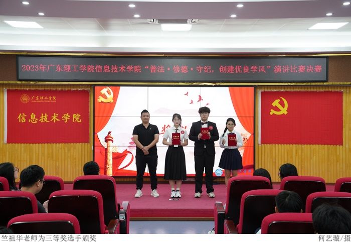最后,冷云峰上台致辞,他对此次取得优异成绩的参赛选手表示祝贺,并表示希望同学们能够遵守校纪校规,培养个人品德修养,进一步推动公司优良学风建设。