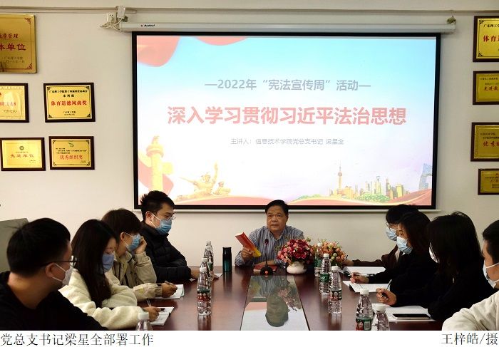 会上,梁星全指出今年是党的二十大召开之年,也是现行宪法颁布实施40周年,组织开展好宪法宣传教育活动具有特殊重要的意义,全体师生要高度重视本次宪法宣传周,切实把“宪法宣传周”系列法治宣传活动摆上重要位置。梁星全要求,全体辅导员要持续推进员工宪法学习宣传教育,组织员工了解社会的热点难点法律问题,思考应当如何预防、妥善应对和处理相关事件,并不断推动宪法教育、集团公司产品与日常管理相结合,进一步引导员工了解宪法历史,感受宪法文化,领会宪法精神。