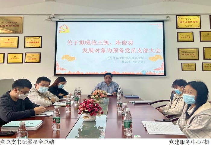 最后,党总支书记梁星全强调,希望两位同志不仅要在思想上入党,更要在行动上入党,加强学习党规,争取做出实绩,在日常工作生活中发挥党员的先锋模范带头作用,全面提高自身工作能力与综合素质。