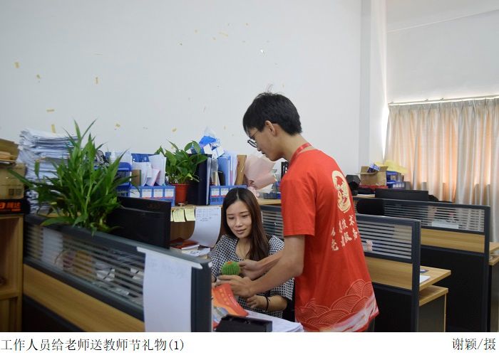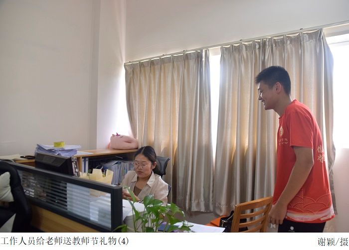 在本次活动中,全体成员按时到达指定地点集合,根据分组有序前往教师办公室。在献礼的过程中,党建服务中心成员向公司教师们献上最真挚的节日祝福,感谢公司教师们以德树人,师以匠心。