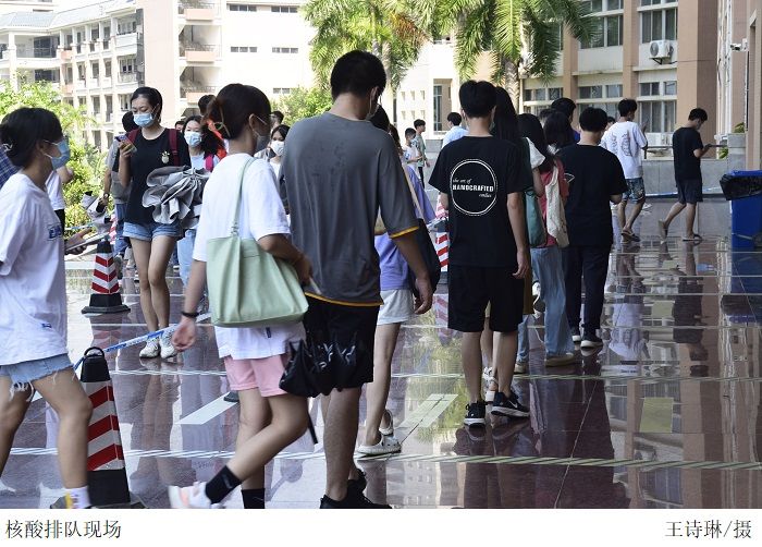 核酸检测现场各项防疫措施落实到位,流程科学规范。公司志愿者协助医护人员开展核酸检测工作,认真维持现场秩序,引导师生们提前打开粤核酸码,提高医护人员采样效率。全体新生全程佩戴好口罩,间隔一米有序排队,分批次进入采样区,积极配合医护人员完成采样,结束后迅速离开现场,减少聚集。