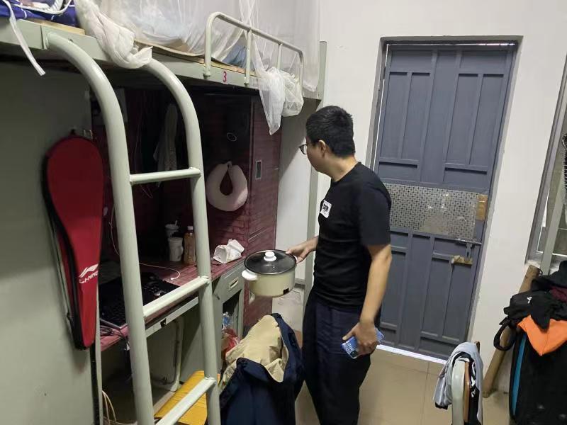 本次安全检查针对员工宿舍楼道供电安全、宿舍内乱接电线、违规电器、楼内消防设施等安全隐患。在检查过程中,检查人员仔细检查每间宿舍,针对电饭锅、电磁炉、热水壶等违规大功率电器予以收缴,在检查出不合格的宿舍时,检查人员认真指出错误督促其改正,并向同学们普及用电安全知识。冷云峰副书记叮嘱同学们要养成良好的生活习惯,时刻牢记安全防范意识,保持宿舍的整洁度,注意用电安全。