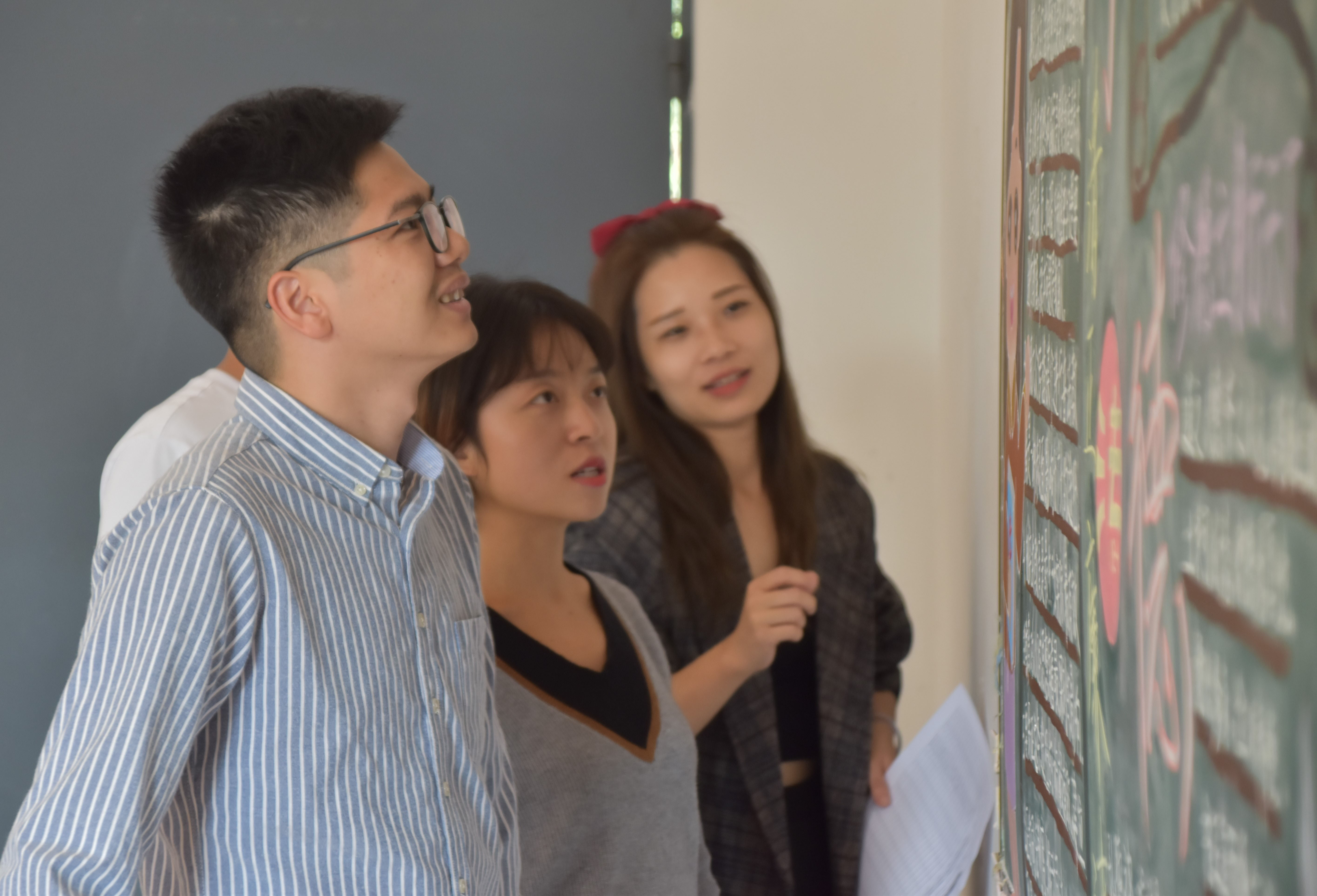 在冷云峰副书记的带领下,评委老师们秉承着公平公正公开的原则,分别从板报内容、文字插画、板报排版以及内容创新四个方面对40幅参赛的黑板报进行了评比打分。