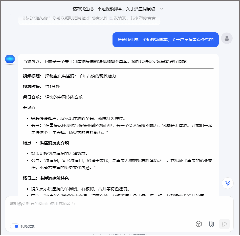 图1 洪崖洞景点介绍短视频脚本生成