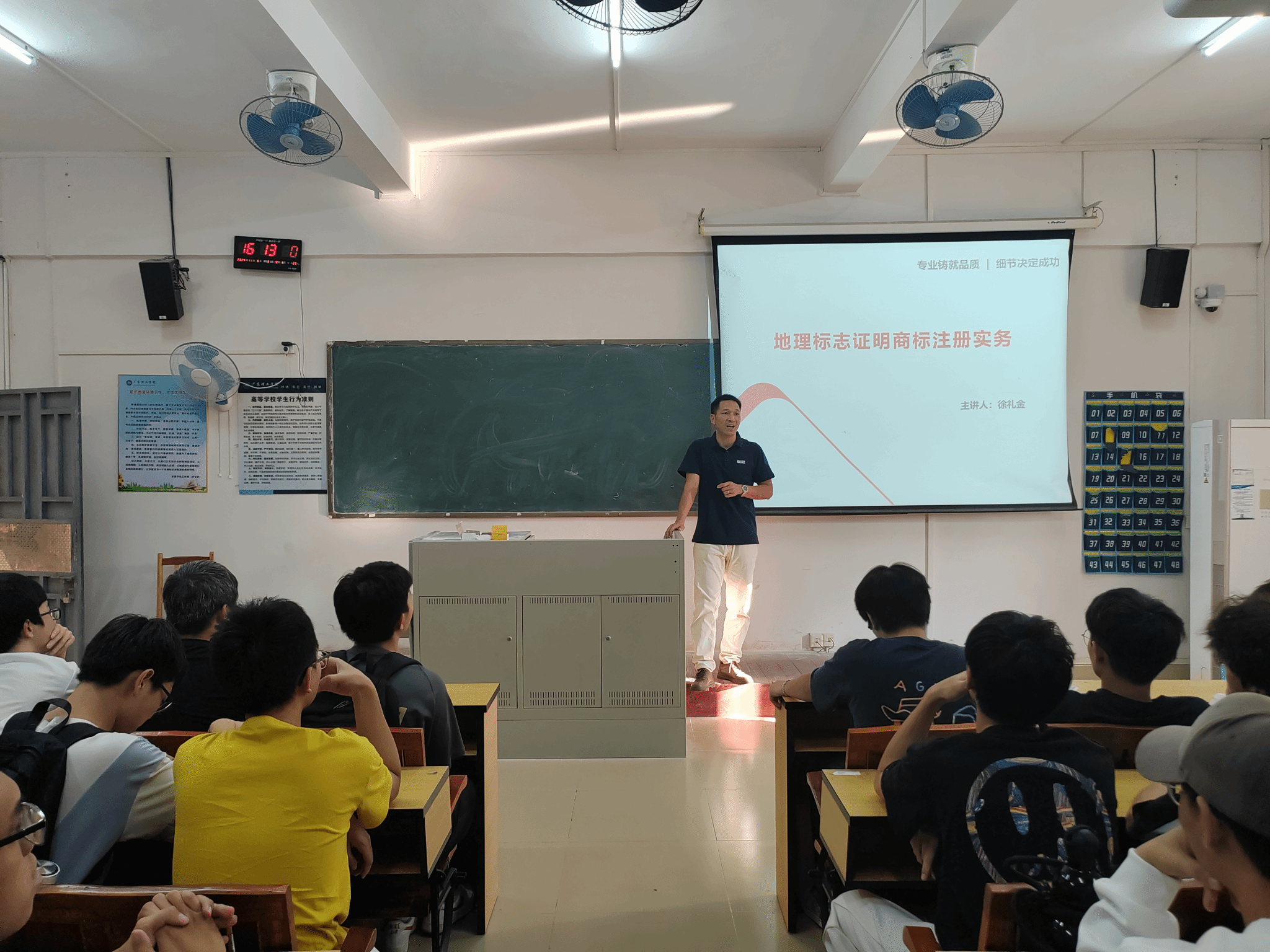 活动伊始,徐礼金副经理发表了热情洋溢的开场致辞。他强调,地理标志作为地方特色产品的“身份证”和“名片”,对于提升产品竞争力、促进地方经济发展具有重要意义。然而,当前地理标志领域的人才短缺问题日益凸显,因此,加强地理标志人才的培养显得尤为重要。随后,徐礼金副经理围绕地理标志的基本概念、申请与审查流程、保护策略与运用实践等方面进行了深入浅出的讲解。并结合国内外地理标志工作的成功案例,生动形象地展示了地理标志在推动区域经济发展中的重要作用。同时,还就如何运用信息技术手段提升地理标志的保护和管理水平进行了深入探讨,通过模拟申请地理标志、分析地理标志侵权案例等互动环节,让同学们得以将所学知识应用于实践中,进一步加深了同学们对地理标志工作的理解和认识。