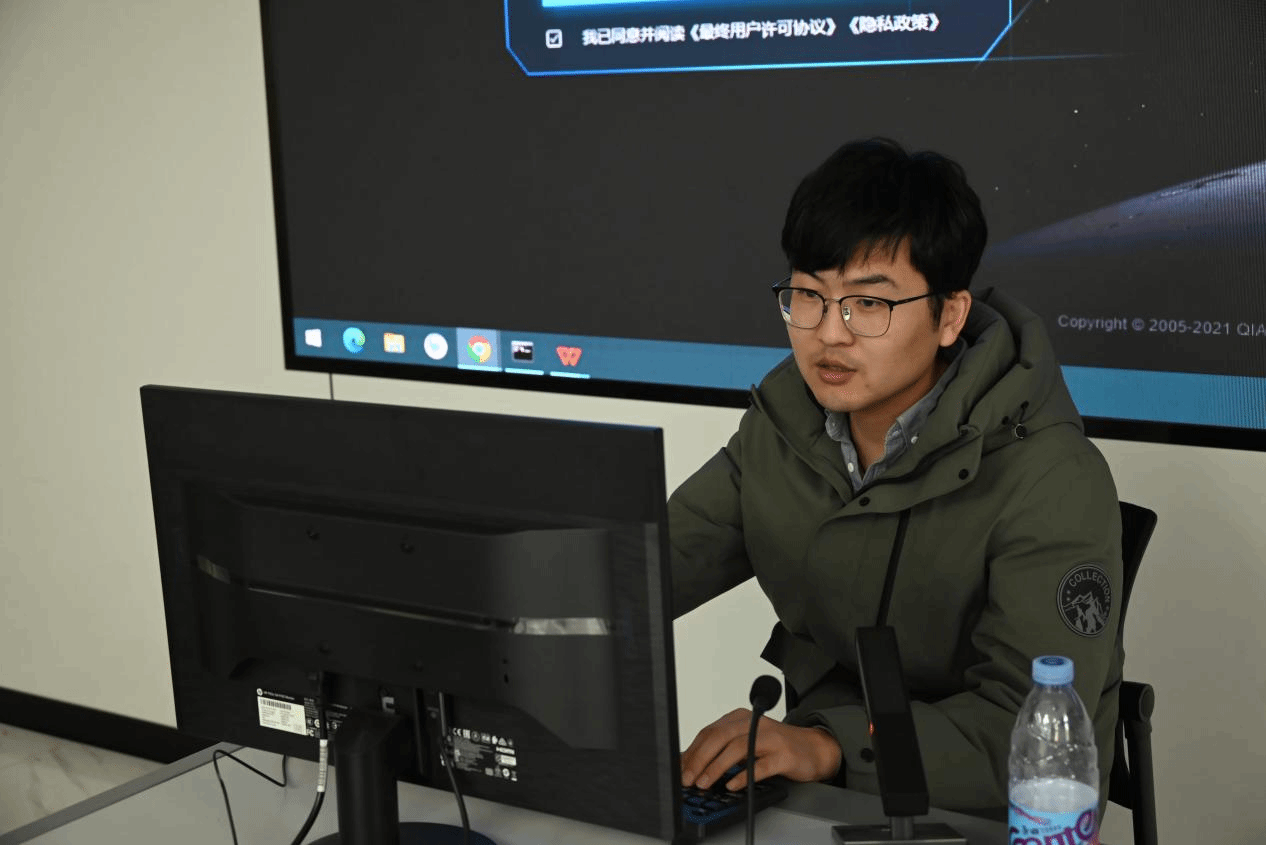 奇安信科技集团股份有限公司技术指导李亚松为老师们详细介绍网络安全实训系统和网络安全竞技系统。