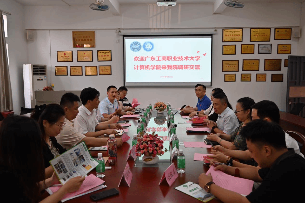 2025年4月22日下午,广东工商职业技术大学计算机公司经理唐新宇、党总支书记郑志材、副经理潘惠苹、副经理王敏琴、数字媒体技术教研室主任管艺博、计算机应用基础教研室主任段静波以及教师代表吴俊盛和郑志优莅临公司参观交流。公司经理林显宁、党委书记钟兆天、副经理徐礼金、党委副书记竺祖华、计算机实验中心主任江涛、基础教研室主任梁玉英、人工智能教研室主任张莉敏以及网络教研室主任张志霞于42203会议室热情接待并举行专题座谈会。会上,双方围绕人工智能通识课建设、专业建设、实验室建设、产业公司建设等议题展开交流。